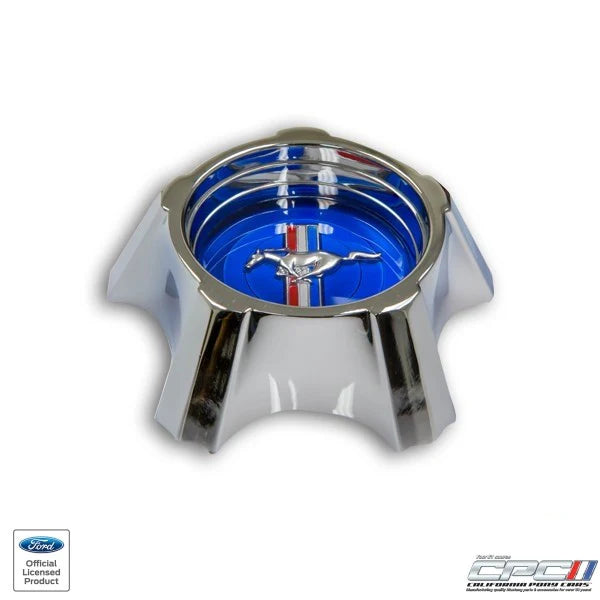 1967 styled steel wheel center cap assembly, blue center emblem, running horse with tri-color bar.